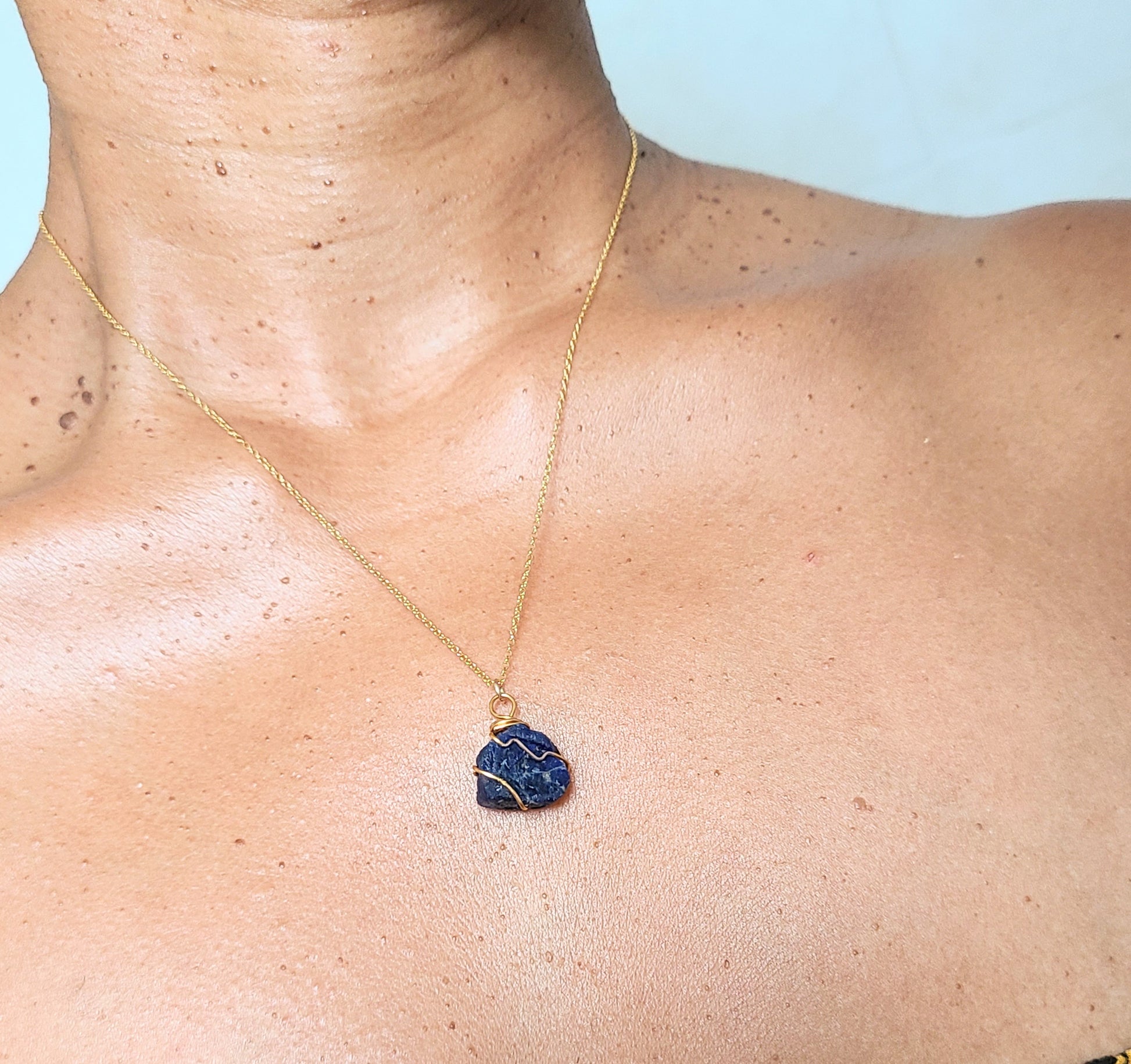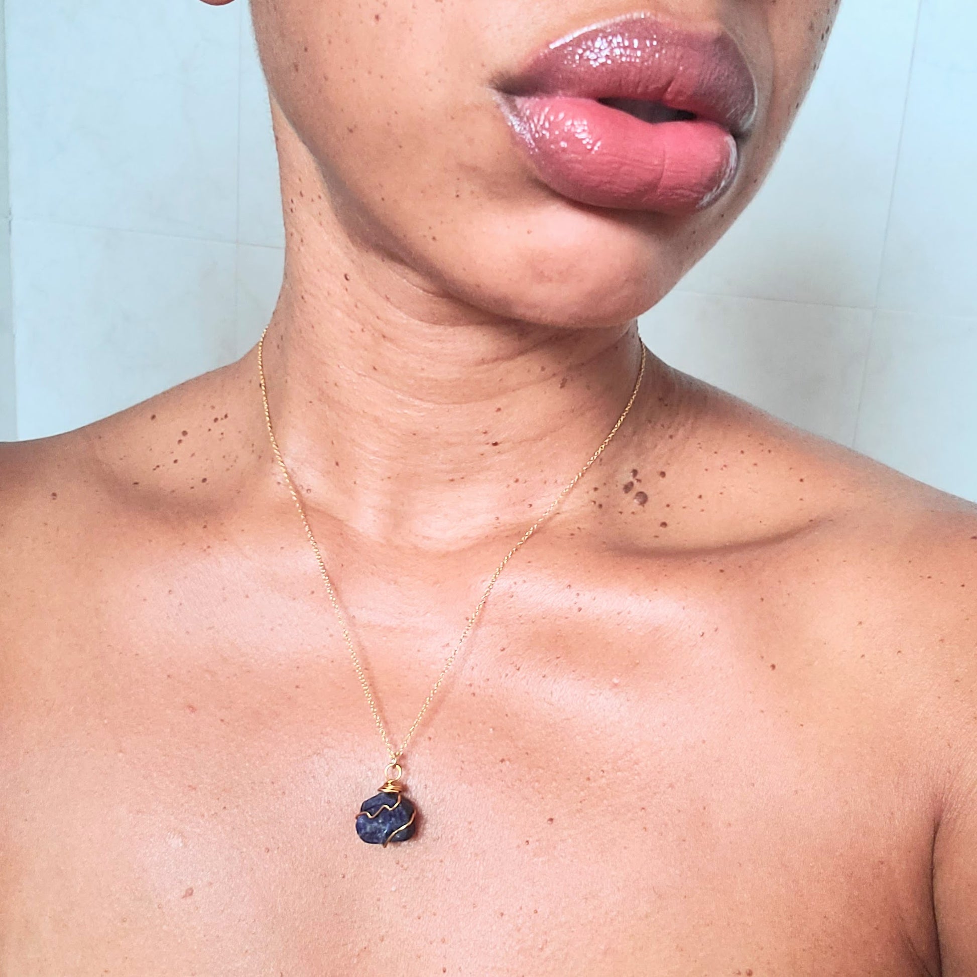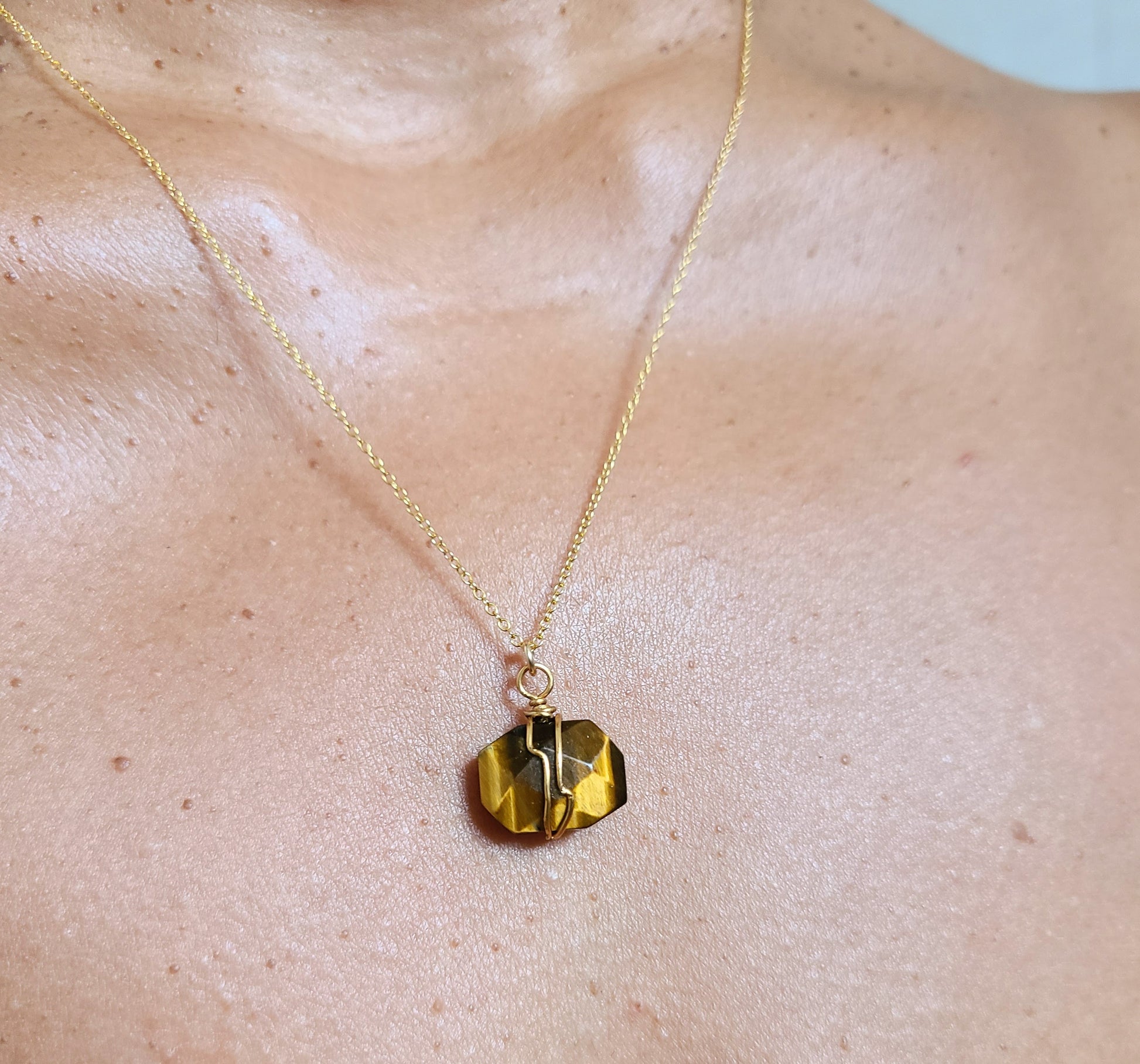 Single Natural gemstone hand-wrapped and swinging on an 18K gold-filled chain.