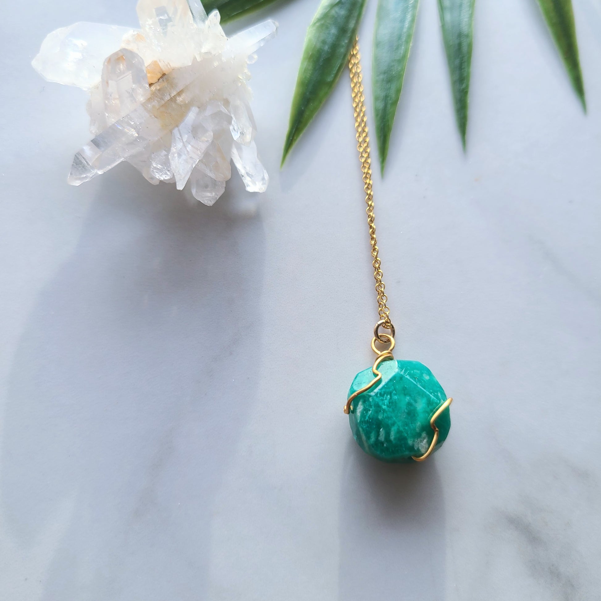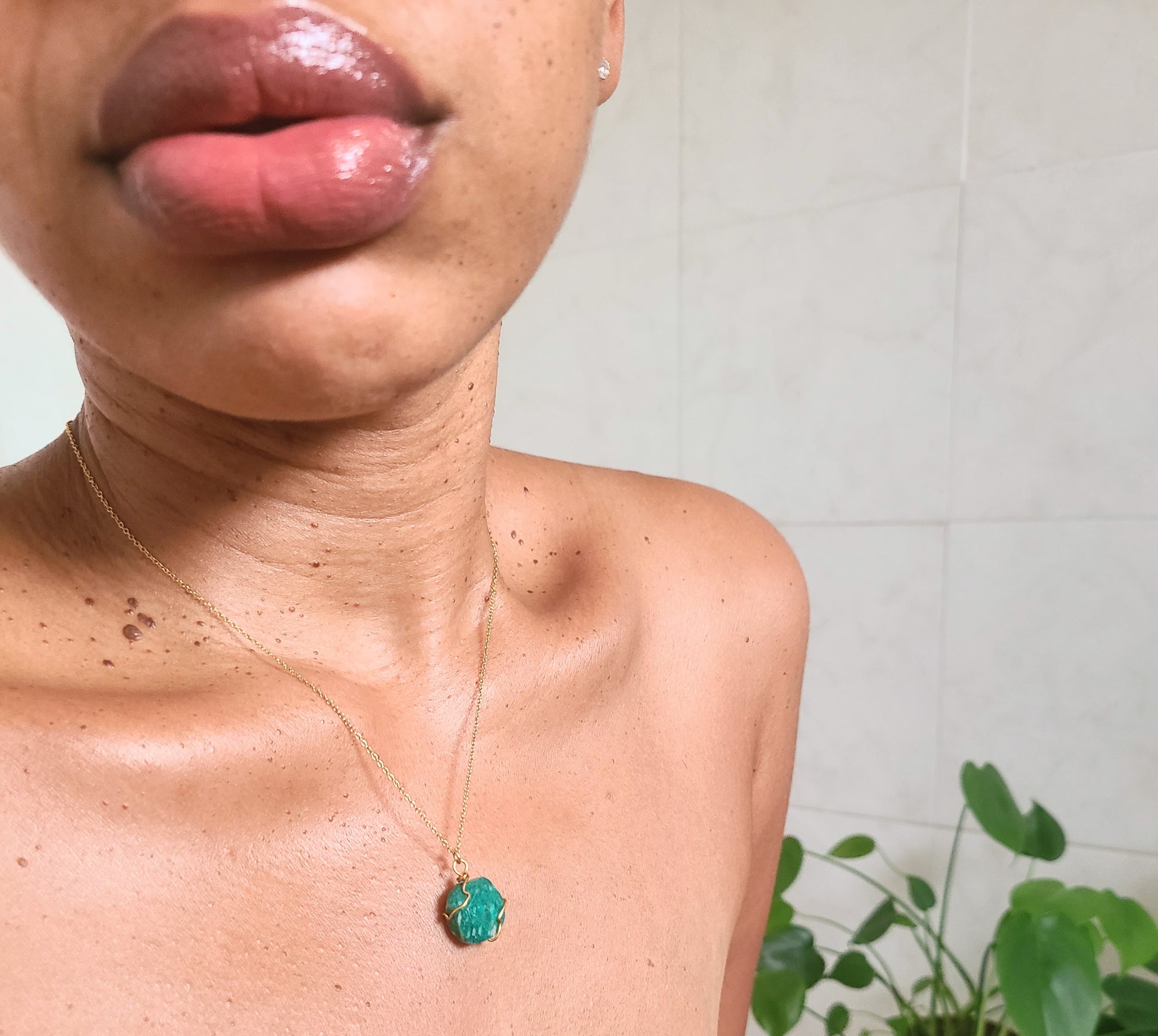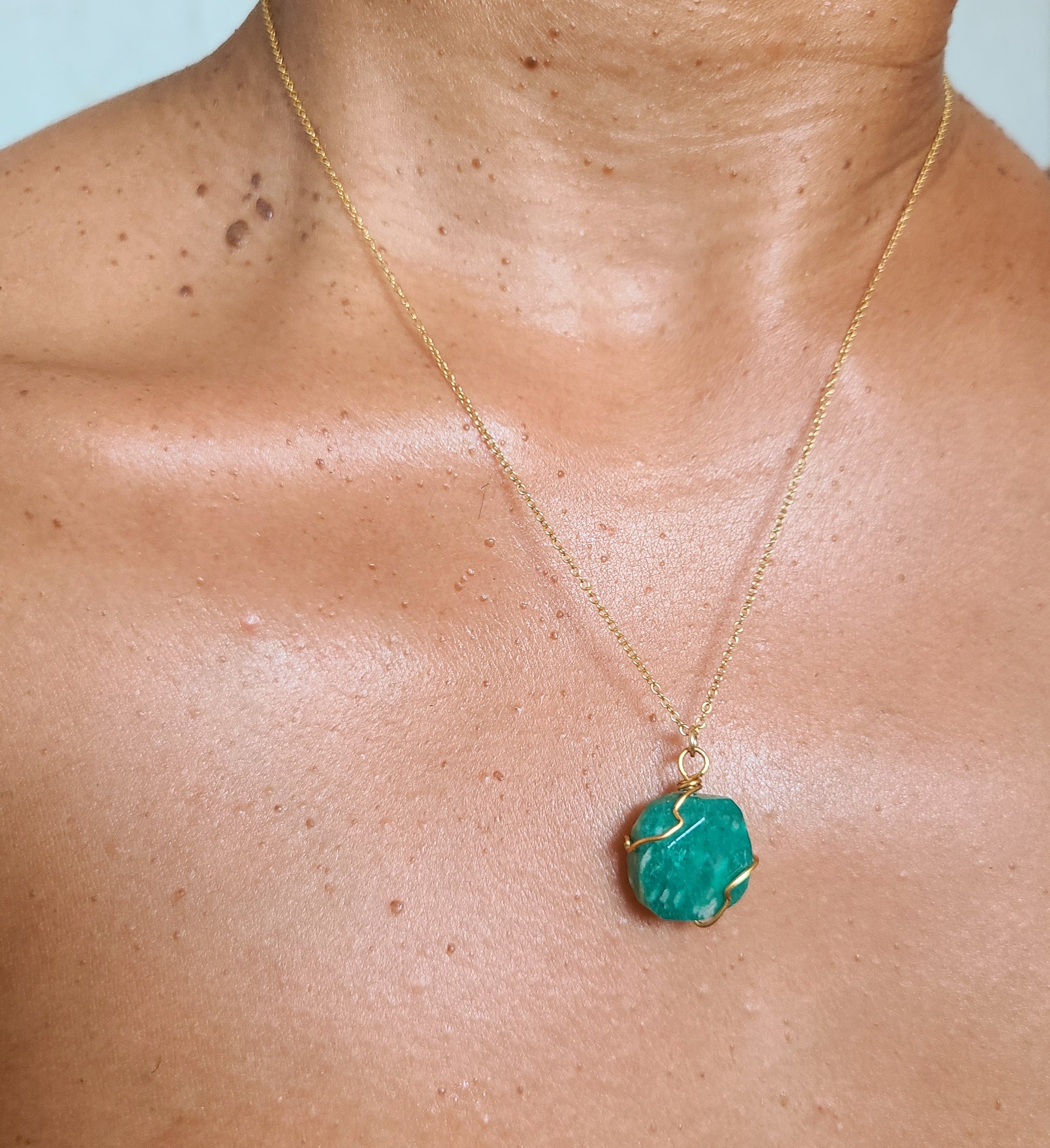 Single Natural gemstone hand-wrapped and swinging on an 18K gold-filled chain.