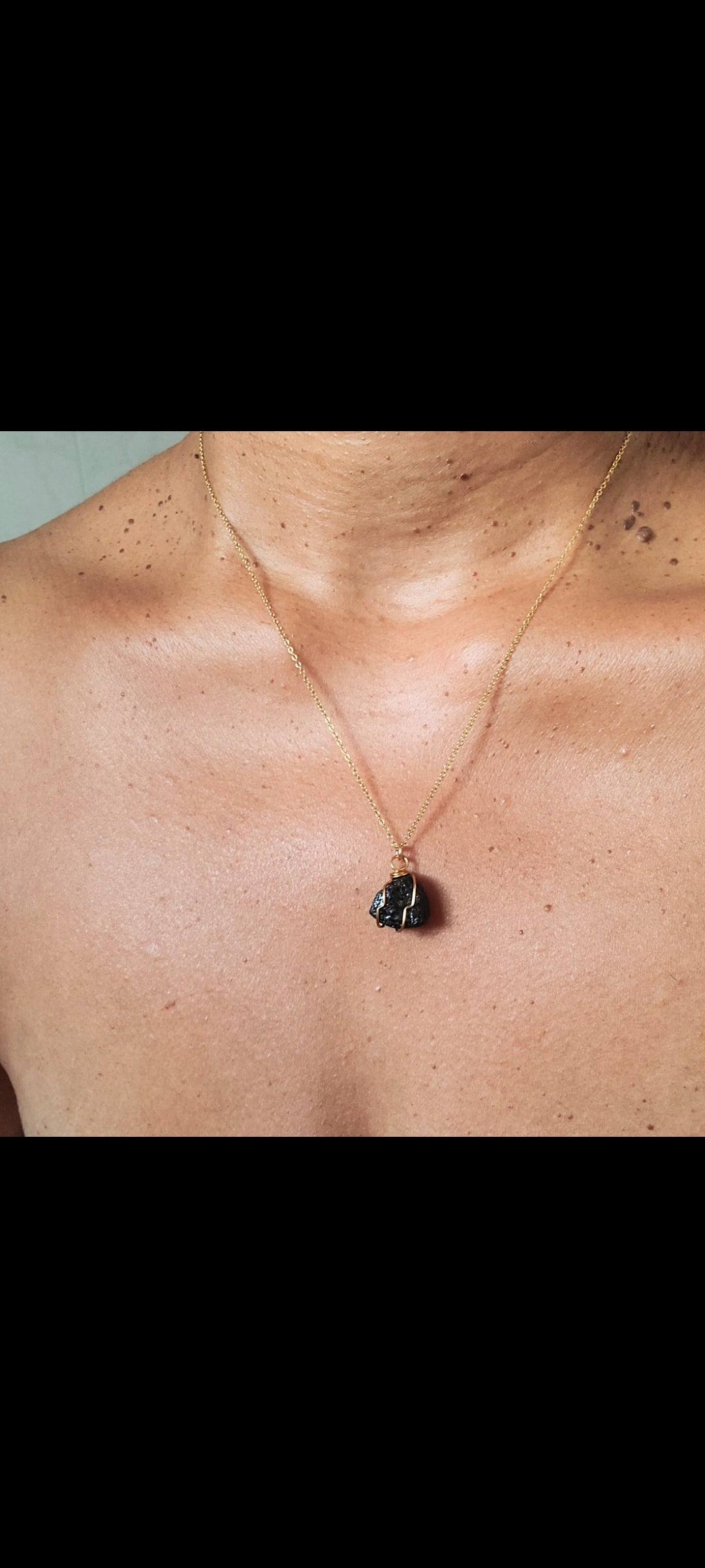 Single Natural gemstone hand-wrapped and swinging on an 18K gold-filled chain.