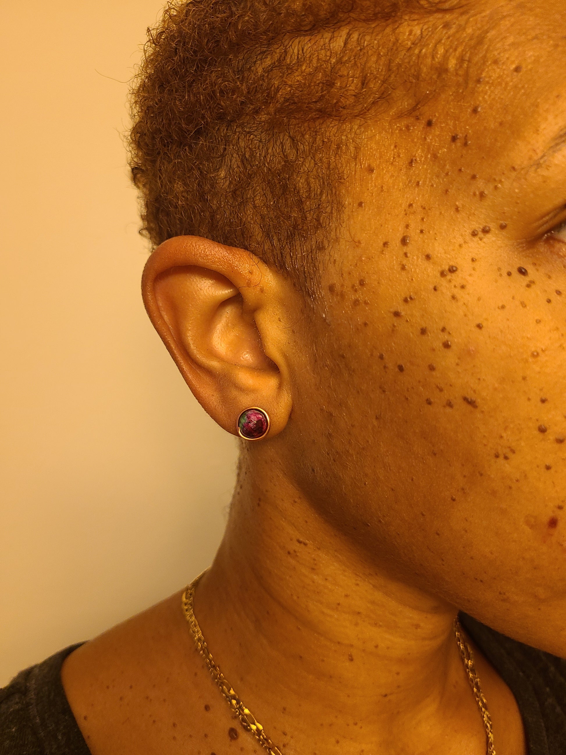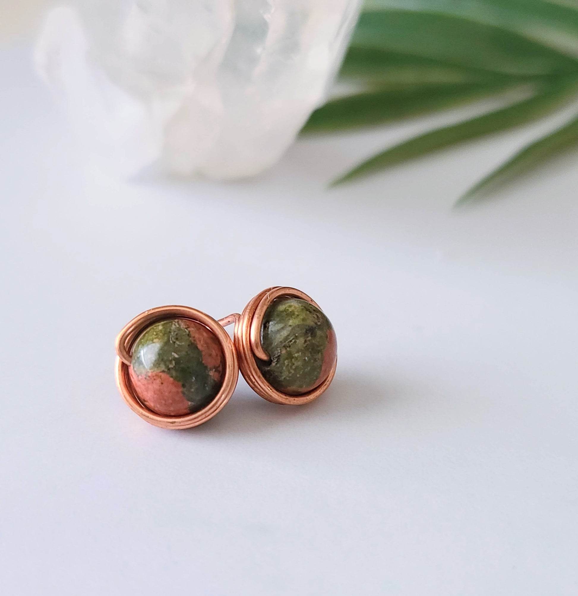 Natural gemstone sphere wrapped in raw copper to make the perfect studs for any and everyone.